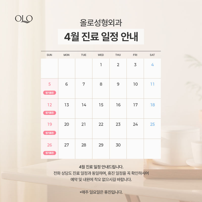 올로성형외과 4월 진료일정