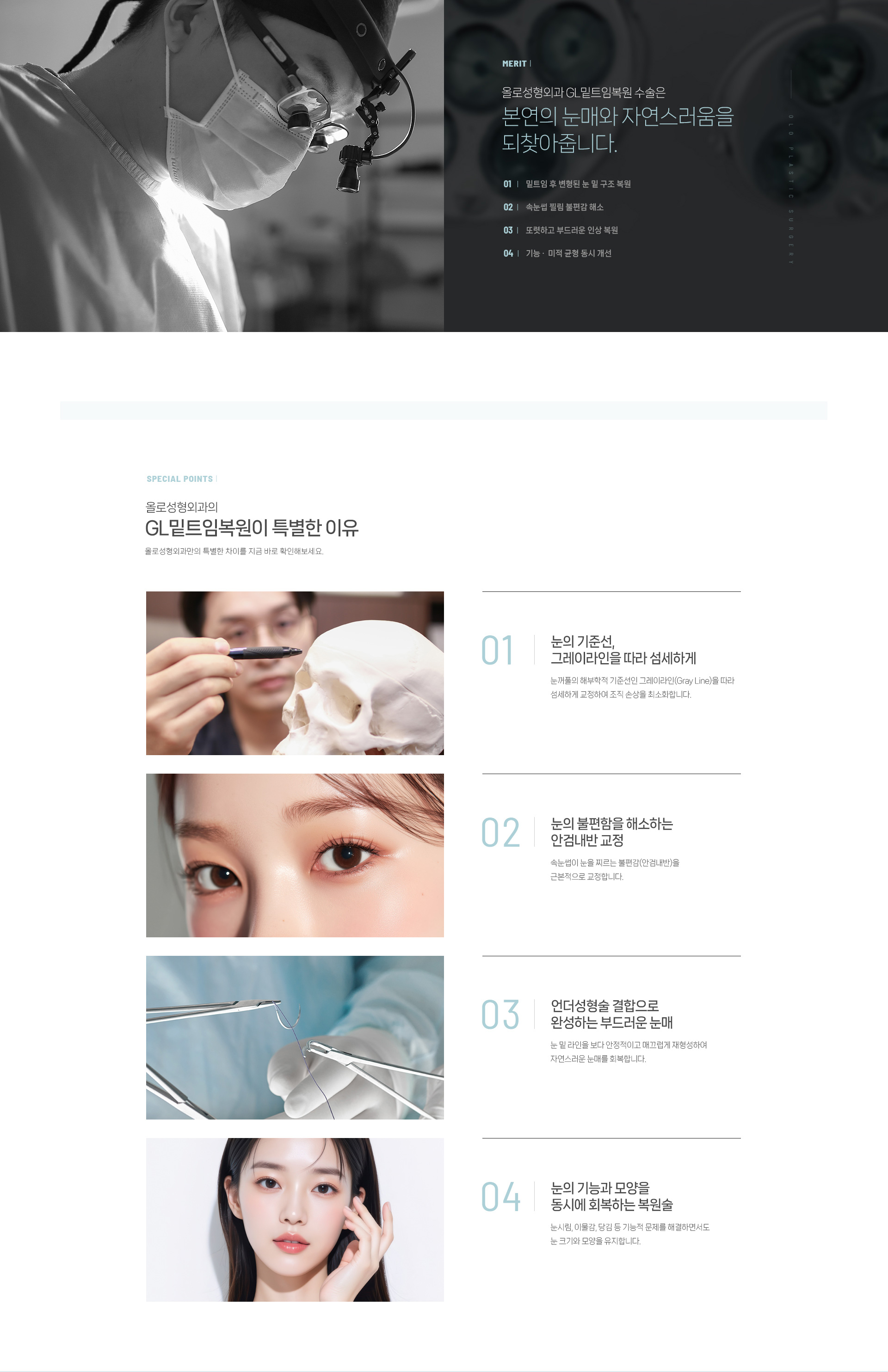 종합적으로 고려하여 자연스럽고 안정적인 눈매를 복원합니다.