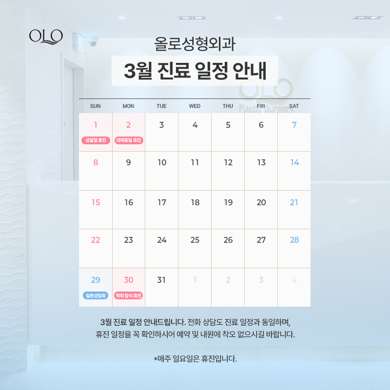 올로성형외과 3월 진료일정